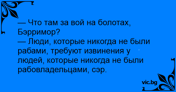 — Люди, которые никогда не были рабами, требуют извинения у людей, которые никогда не были рабовладельцами, сэр.