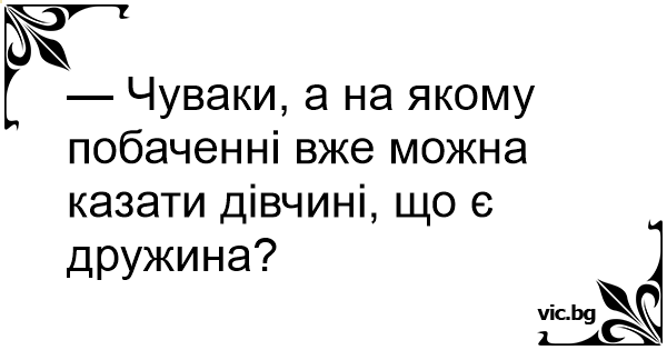— Чуваки, а на якому побаченні вже можна казати дівчині, що є дружина?