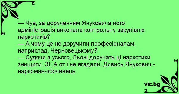— Чув, за дорученням Януковича його адміністрація виконала контрольну закупівлю наркотиків?