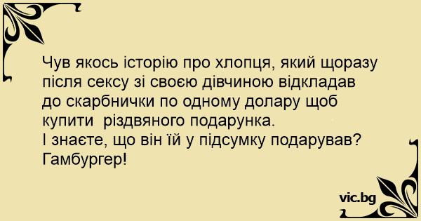 Чув якось історію про хлопця, який щоразу після сексу зі своєю дівчиною відкладав до скарбнички по одному долару щоб купити різдвяного подарунка.