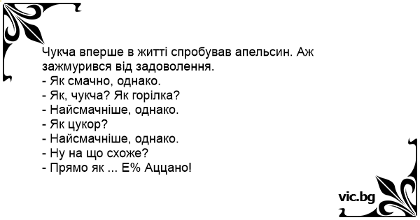 Чукча вперше в житті спробував апельсин. Аж зажмурився від задоволення.