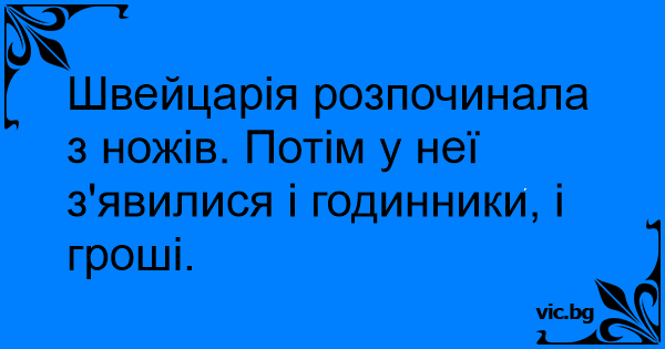 Швейцарія розпочинала з ножів. Потім у неї з'явилися і годинники, і гроші.
