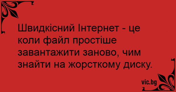 Швидкісний Інтернет - це коли файл простіше завантажити заново, чим знайти на жорсткому диску.