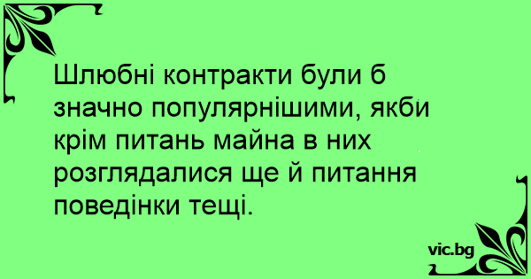 Шлюбні контракти були б значно популярнішими, якби крім питань майна в них розглядалися ще й питання поведінки тещі.