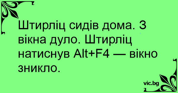 Штирліц сидів дома. З вікна дуло. Штирліц натиснув Аlt+F4 — вікно зникло.