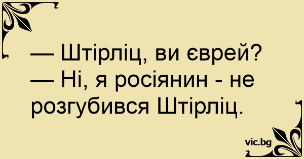 — Ні, я росіянин - не розгубився Штірліц.
