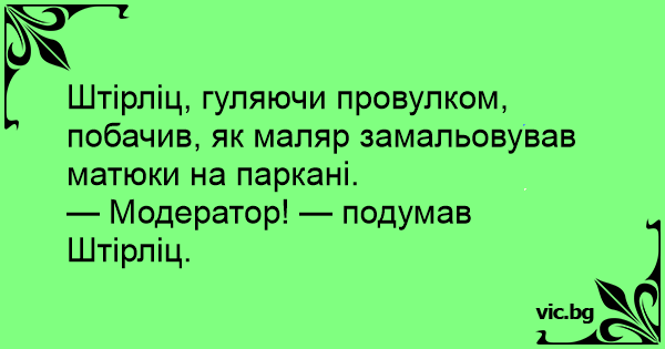 Штірліц, гуляючи провулком, побачив, як маляр замальовував матюки на паркані.