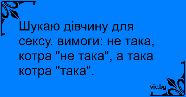 Шукаю дівчину для сексу. вимоги: не така, котра "не така", а така котра "така".