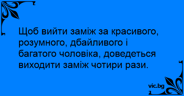 Щоб вийти заміж за красивого, розумного, дбайливого і багатого чоловіка, доведеться виходити заміж чотири рази.