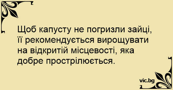 Щоб капусту не погризли зайці, її рекомендується вирощувати на відкритій місцевості, яка добре прострілюється.