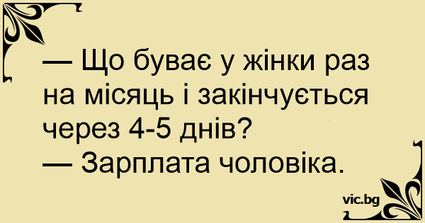 — Що буває у жінки раз на місяць і закінчується через 4-5 днів?