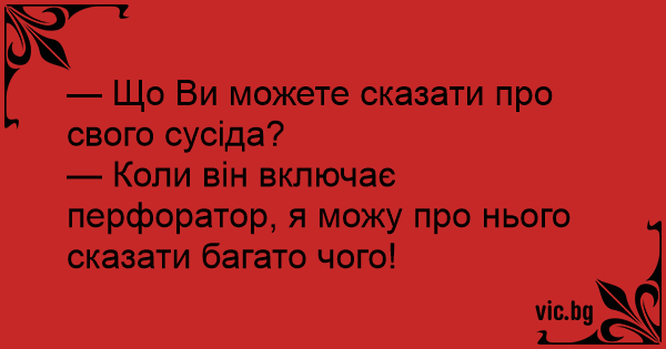 — Коли він включає перфоратор, я можу про нього сказати багато чого!