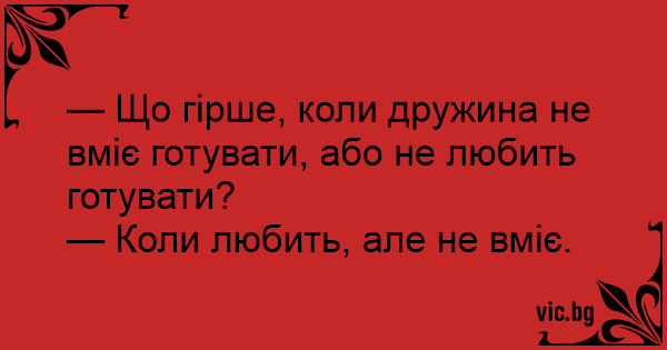 — Що гірше, коли дружина не вміє готувати, або не любить готувати?