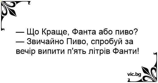 — Звичайно Пиво, спробуй за вечір випити п'ять літрів Фанти!