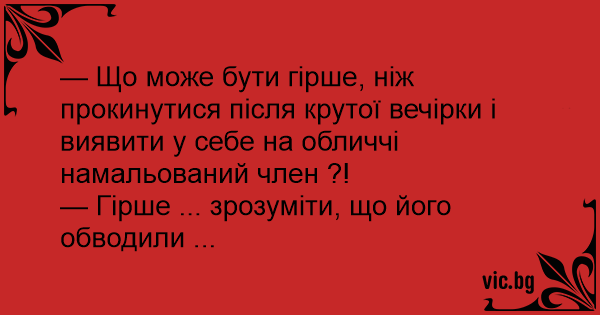 — Що може бути гірше, ніж прокинутися після крутої вечірки і виявити у себе на обличчі намальований члeн ?!