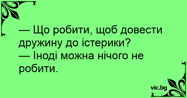 — Що робити, щоб довести дружину до істерики?