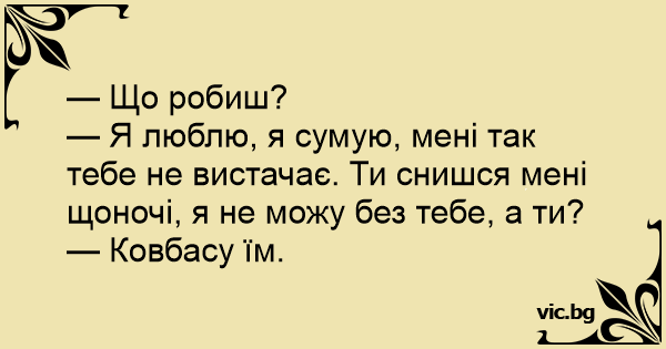— Я люблю, я сумую, мені так тебе не вистачає. Ти снишся мені щоночі, я не можу без тебе, а ти?