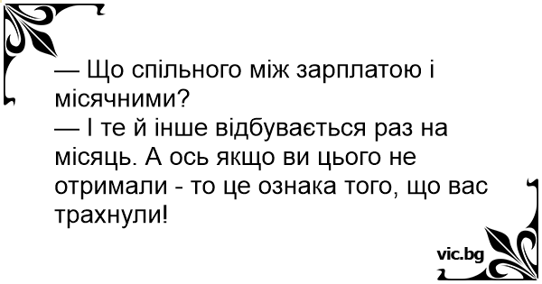 — І те й інше відбувається раз на місяць. А ось якщо ви цього не отримали - то це ознака того, що вас трахнули!
