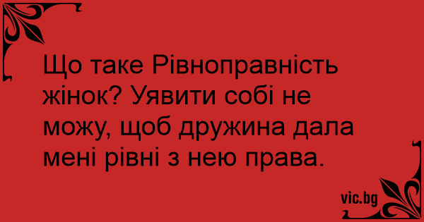 Що таке Рівноправність жінок? Уявити собі не можу, щоб дружина дала мені рівні з нею права.