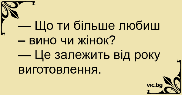 - Тебе вино больше нравится или женщины? - Смотря какой год производства.