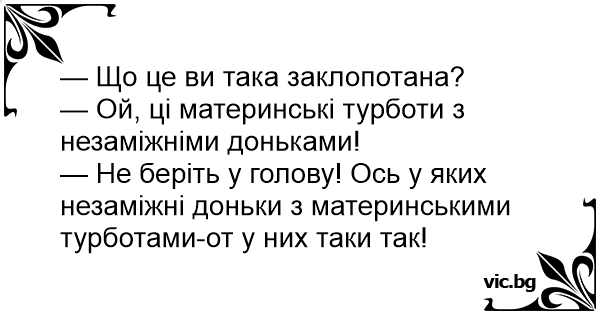 — Ой, ці материнські турботи з незаміжніми доньками!