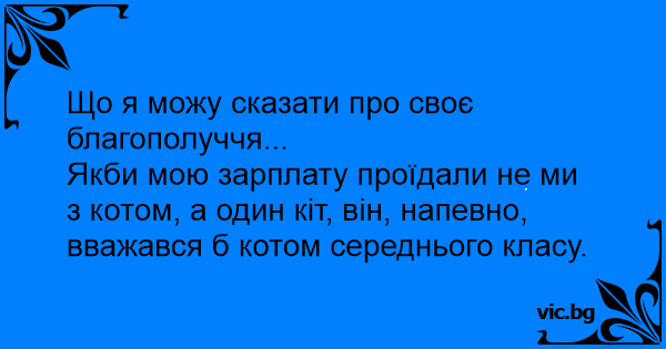Якби мою зарплату проїдали не ми з котом, а один кіт, він, напевно, вважався б котом середнього класу.