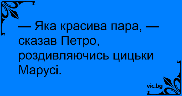 — Яка красива пара, — сказав Петро, роздивляючись цицьки Марусі.