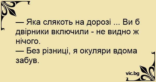 — Яка слякоть на дорозі ... Ви б двірники включили - не видно ж нічого.