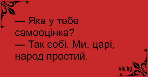 — Яка у тебе самооцінка?<br />— Так собі. Ми, царі, народ простий.