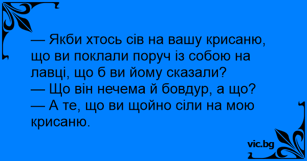 — Якби хтось сів на вашу крисаню, що ви поклали поруч із собою на лавці, що б ви йому сказали?
