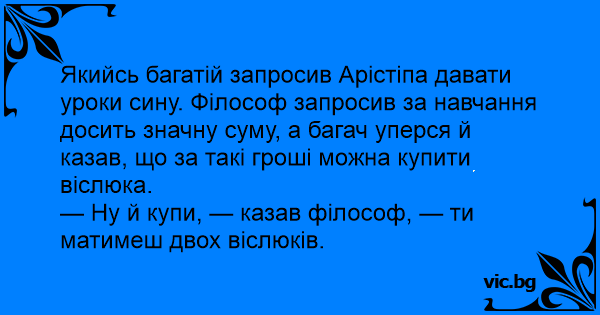 — Ну й купи, — казав філософ, — ти матимеш двох віслюків.