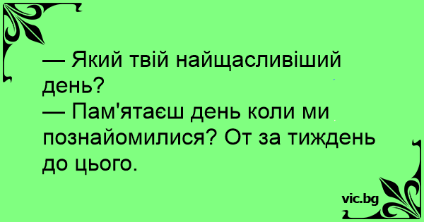 — Пам'ятаєш день коли ми познайомилися? От за тиждень до цього.