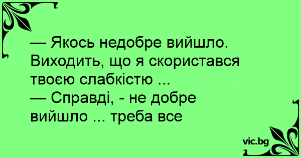 — Якось недобре вийшло. Виходить, що я скористався твоєю слабкістю ...