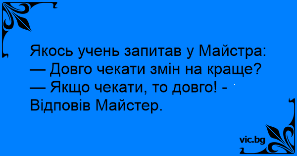 — Якщо чекати, то довго! - Відповів Майстер.