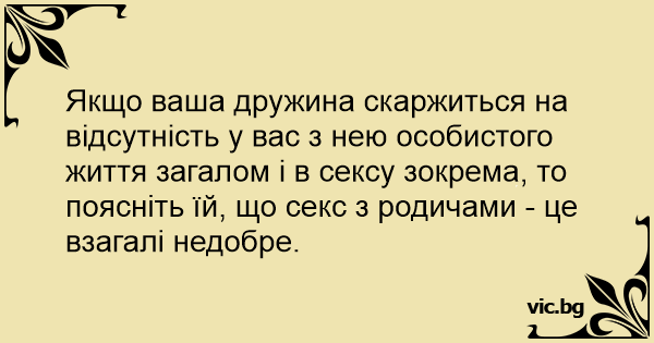 Якщо ваша дружина скаржиться на відсутність у вас з нею особистого життя загалом і в сексу зокрема, то поясніть їй, що cekc з родичами - це взагалі недобре.