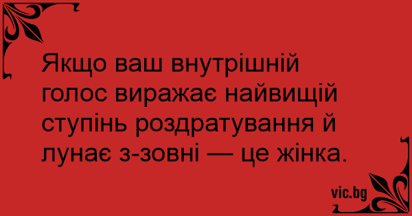 Якщо ваш внутрішній голос виражає найвищій ступінь роздратування й лунає з-зовні — це жінка.