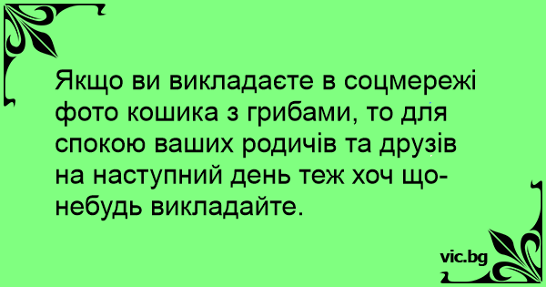 Якщо ви викладаєте в соцмережі фото кошика з грибами, то для спокою ваших родичів та друзів на наступний день теж хоч що-небудь викладайте.
