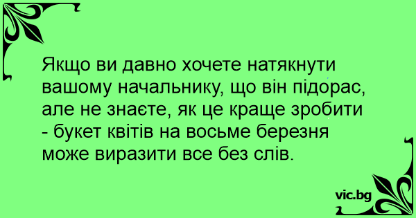 Якщо ви давно хочете натякнути вашому начальнику, що він підорас, але не знаєте, як це краще зробити - букет квітів на восьме березня може виразити все без слів.