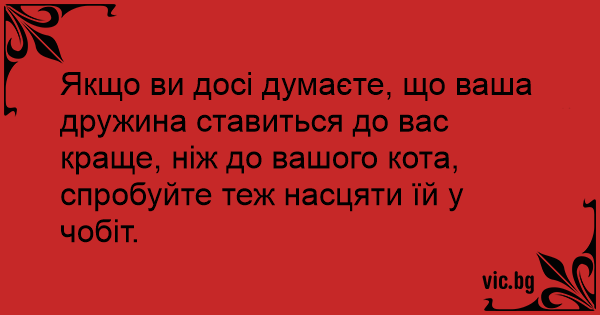 Якщо ви досі думаєте, що ваша дружина ставиться до вас краще, ніж до вашого кота, спробуйте теж насцяти їй у чобіт.