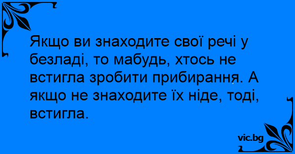Якщо ви знаходите свої речі у безладі, то мабудь, хтось не встигла зробити прибирання. А якщо не знаходите їх ніде, тоді, встигла.