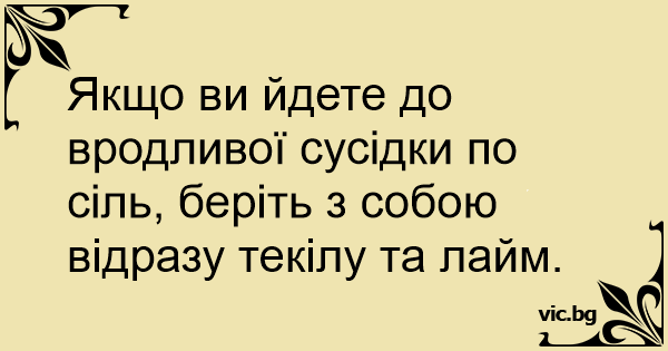 Якщо ви йдете до вродливої сусідки по сіль, беріть з собою відразу текілу та лайм.