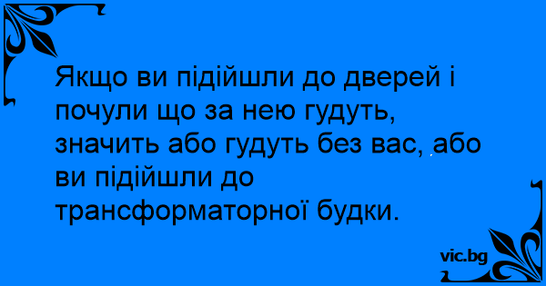 Якщо ви підійшли до дверей і почули що за нею гудуть, значить або гудуть без вас, або ви підійшли до трансформаторної будки.