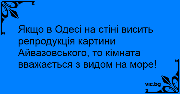 Якщо в Одесі на стіні висить репродукція картини Айвазовського, то кімната вважається з видом на море!