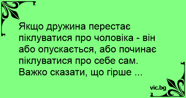 Якщо дружина перестає піклуватися про чоловіка - він або опускається, або починає піклуватися про себе сам. Важко сказати, що гірше ...
