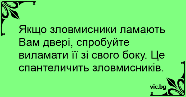 Якщо зловмисники ламають Вам двері, спробуйте виламати її зі свого боку. Це спантеличить зловмисників.