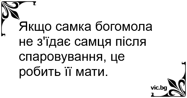 Якщо самка богомола не з'їдає самця після спаровування, це робить її мати.