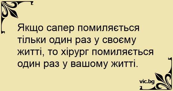 Якщо сапер помиляється тільки один раз у своєму житті, то хірург помиляється один раз у вашому житті.