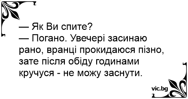 — Погано. Увечері засинаю рано, вранці прокидаюся пізно, зате після обіду годинами кручуся - не можу заснути.