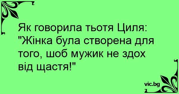 "Жінка була створена для того, шоб мужик не здох від щастя!"