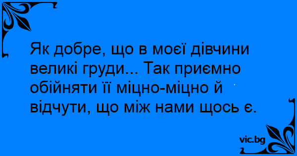 Як добре, що в моєї дівчини великі груди... Так приємно обійняти її міцно-міцно й відчути, що між нами щось є.